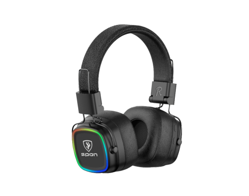 سماعة ستريو بلوتوث مع مايك ساس ماركة SPON من الضمان ستور - استمتع بتجربة صوت غامر مع إضاءة LED متعددة الألوان، تصميم عصري، وصوت واضح ونقي مع ميكروفون مدمج.